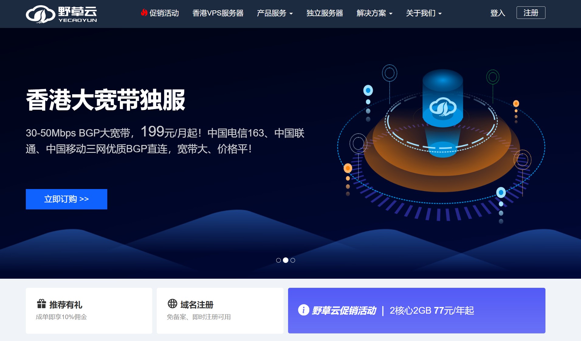 - “拳头”产品:香港VPS / 香港虚拟主机 这是野草云的“安身立命”之本。它在香港节点上浸淫了超过10年,深知国人用户的痛点。